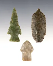 Set of 3 nicely made points found in California. The largest is 2 3/16". |