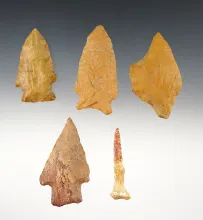 Set of 5 Late Archaic Points found in Albany, Georgia. The largest is 3 1/8". GEORGIA 55.00