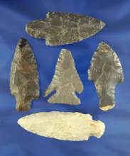 Set of five assorted Arrowheads found in Orange Co., Indiana, largest is 2 5/8". |