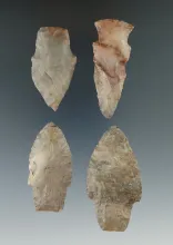 Set of four assorted arrowheads on the Michigan, largest is 2 3/8". |