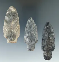 Set of three Stemmed Knives found in Michigan, largest is 3 1/16". |