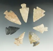 Set of seven assorted points in nice condition found in Hillsdale Co., Michigan. |