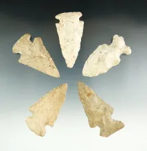 Set of 5 assorted Thebes Knives, largest is 2 13/16". Found in Lenawee Co., Michigan. |