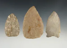 Set of 3 nicely made points found in Missouri and Iowa. The largest is 3 1/8". 3 COAs. |