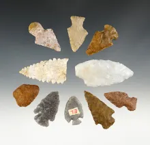 Set of 10 assorted points found in New Mexico. The largest is 2 3/8". |
