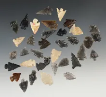 Group of 36 Assorted Arrowheads found in New Mexico, largest is 7/8". |