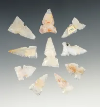 Group of 10 Assorted Arrowheads made from Agate, New Mexico in 1957. Largest is 1 1/16". |