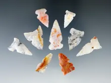 Set of nine assorted arrowheads found in New Mexico. Largest is 2 1/4". |