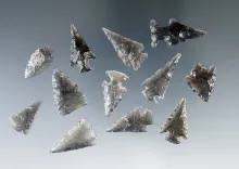 Group of 14 Assorted Arrowheads found in New Mexico, largest is 15/16". |
