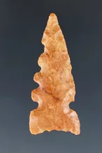 Nice! 2 1/16" Alibates Flint Plainview found in New Mexico with a lateral impact fracture at tip. |