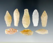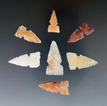 Group of eight Chalcedony arrowheads found in New Mexico, largest is 1 7/16". |