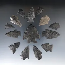 Set of 14 Basalt Arrowheads found in New Mexico. Largest is 1 11/16". |