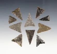 Set of 10 nice Triangle points - Afton, Chenango Co., NY on the Decker, Shultz and Groover farms. |