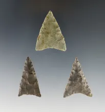 3 Triangular points found in Afton, Chenango Co., NY on the Decker, Shultz and Groover farms. |