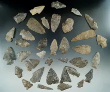 Group of 36 assorted arrowheads from the Vaughan collection - Allegheny Co., New York. |