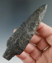 Big and nice! 6 1/8" green Normanskill Flint Paleo Blade found in New York. |