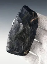 Exceptional flaking on this 3 1/8" Ohio Basal Notch made from black Coshocton Flint. |