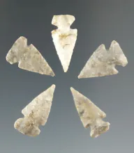 Group of 5 Spiro Mound Birdpoints from the Cooperider Cache, largest is 13/16". |