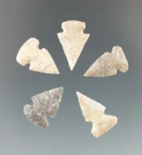 Group of 5 Spiro Mound Birdpoints from the Cooperider Cache, largest is 3/4". |