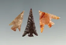 Set of 3 finely made Columbia Plateau points found close to the Umatilla River. The largest is 1". |