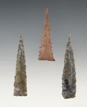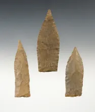 Set of 3 nice Sedalia points found in the Kentucky/Tennessee area. The largest is 3 1/16". |