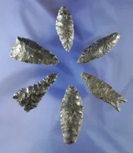 Set of six assorted obsidian artifacts found near Fort Rock Oregon, largest is 2 1/8". OREGON 78.00