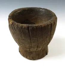 5 3/4" tall Pedestal based hand-carved Wooden Iroquois bowl, recovered in New York. |
