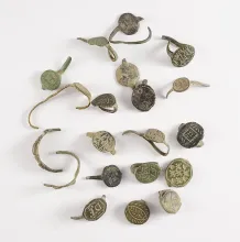 Set of 7 early Colonial Buttons & Dangles recovered at White Springs, Geneva, New York. |