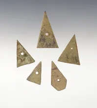 Set of 5 Kettle Points recovered at White Springs, Geneva, New York. The largest is 1 7/16". |