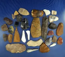 Set of assorted artifacts including blanks, Uniface knives and worked bone and stone. Wyoming. |