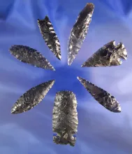 Set of seven nice Obsidian artifacts found in Oregon, largest is 2". OREGON 50.00