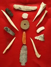 Unique set of artifacts including salvage pottery discs and bone relics found near Witch Well, AZ. |