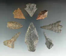 Group of eight assorted Martis Culture artifacts found in Eastern Tehama Co., California. | CALIFORNIA | ||