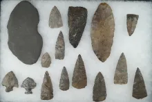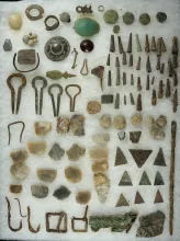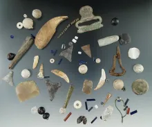 Surface recovered artifacts: bear tooth, Jews harp, Jesuit buttons and flints - various sites in NY.