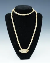 32" Long strand drilled shell beads with a shell Gorget found at a site in Union Co., Ohio. |