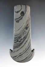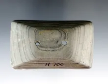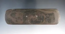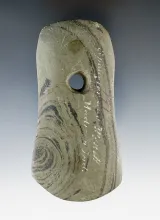 5 5/8" Bar Gorget made from red and black Mottled Slate. Found in Indiana. Ex. Macy Hallock Collecti