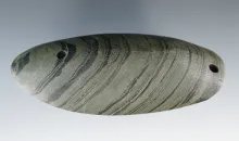3 7/8" Rare Glacial Kame Ridged Gorget. Made from banded Slate, Michigan. |