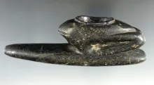 Extremely rare 5 1/2" long Serpentine Frog Effigy Platform Pipe with minimal restoration to bowl. NEW YORK 2,000.00