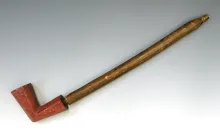 2 3/4" long octagon shaped Catlinite Pipe with the original 11 1/2" wood stem. 250.00
