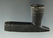 3 3/8" x 1 15/16" Black Steatite Historic Era Elbow Pipe. Beautiful incising on bowl and stem. |