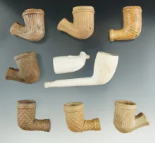 Set of nine clay trade pipes, largest is 3 1/2". |