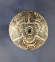 Highly carved PreColumbian 2 7/16" Diameter Hardstone Drilled Spindle Whorl or Bead |