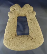 Highly Stylized dual handle PreColumbian Grinding Mano with two human effigies carved at top. |