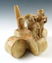 10 1/4" x 6 3/8" Pre-Columbian Chimu Avian Effigy dual chamber Pottery Vessel. |