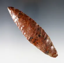 4" Pre-Columbian Stemmed point with unbelievably fine edge work. Mexico. Ex. Hank Johnson. |