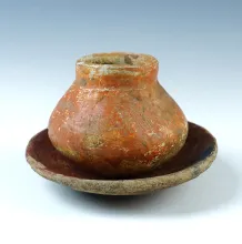 Pair of Pre-Columbian pottery items including a 4 5/8" diameter plate and a 2 1/2" tall jar. Mexico. |