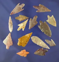 Group of 14 assorted African Neolithic arrowheads from the northern Sahara desert region. 30.00