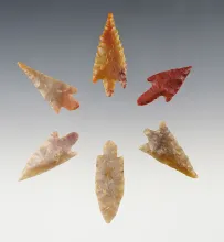 Set of six higher grade African Neolithic Arrowheads - Sahara region. Largest is 1 9/16". |