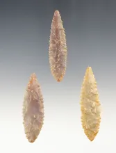 Set of 3 well made African Neolithic Willow Leaf points. The largest is 2 1/8". |