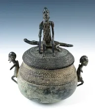 Vintage bronze ornamental container with excellent art work. Africa. |